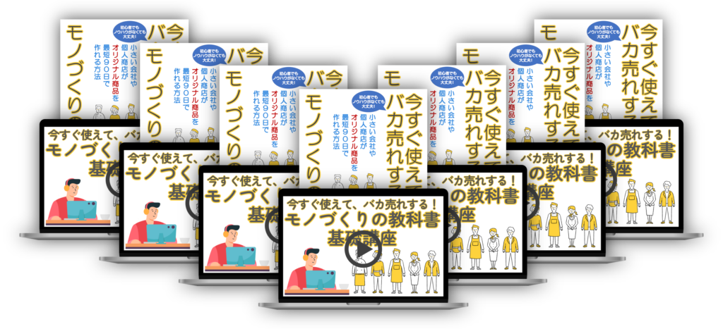 もちろん、何も学ぼうとせずに全て人任せという依存心でお金を使うのはお勧めしませんが、この教材で学び、しっかり基礎を学んだ上で、「モノづくり」というビジネスにとって最も肝心要なメソッドを手に入れて下さい。
